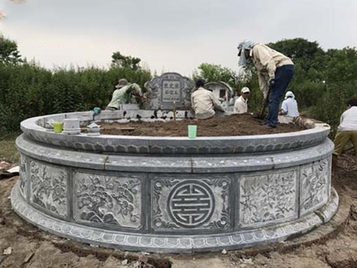 Mộ đá tròn là mẫu mộ thiết kế với lỗ thông thiên địa lớn để hấp thụ được tối đa kim khí, được xem là có phong thủy rất tốt, mang nhiều sinh khí có lợi.